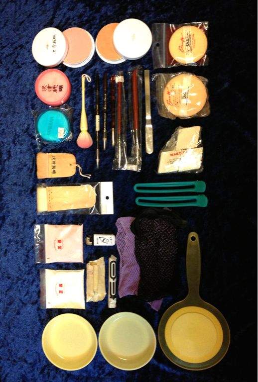 写真は…少し前に整理した舞台化粧道具。白粉や蝋は捨てた。大阪の新歌舞伎座で一ヶ月半、舞台のお仕事をした時に買い揃えたもの。苦労したけど楽しかった。天童よしみさんが座長。川崎麻世さん、仲本工事さん、西川ひろしさんと共演しました。忘れられない思い出。