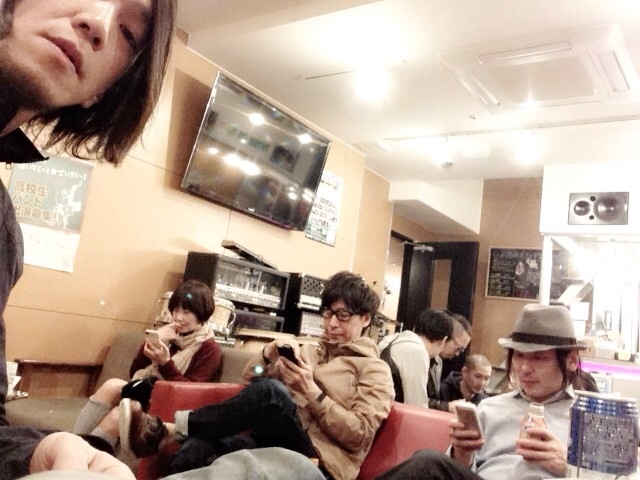 奥の3人は向かって右からVo+G蔭山さん、Ba+Vo野島さん、そんでわたし。Drの鈴木君はたまたま写ってません。また今度upしよう。