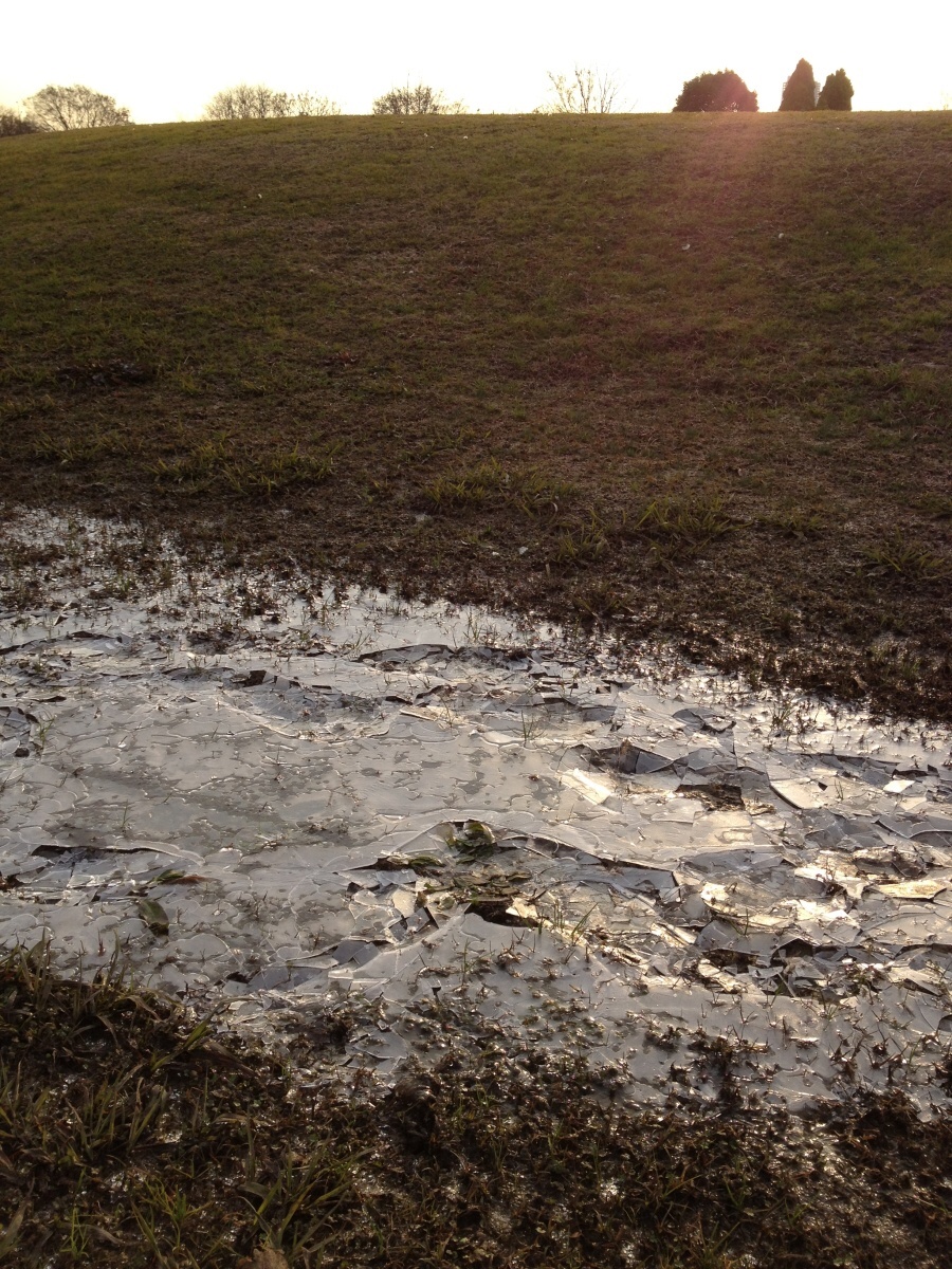 特に書くことはないんだけど、朝の河川公園の氷の写真を見せたかった。