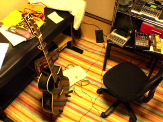 懐かしい、2005年の自分の部屋。録音作業の真っ最中に撮った。左の、ギターを立てかけている黒いのはエレピ。右の機材はリズムマシンとサンプラーとMTR。あー、懐かしい。また録音に没頭とかしたいなー。